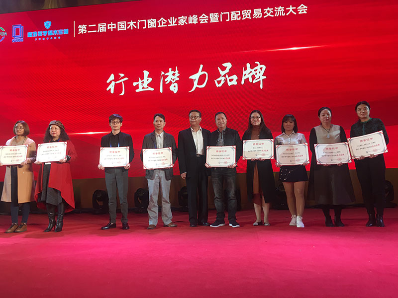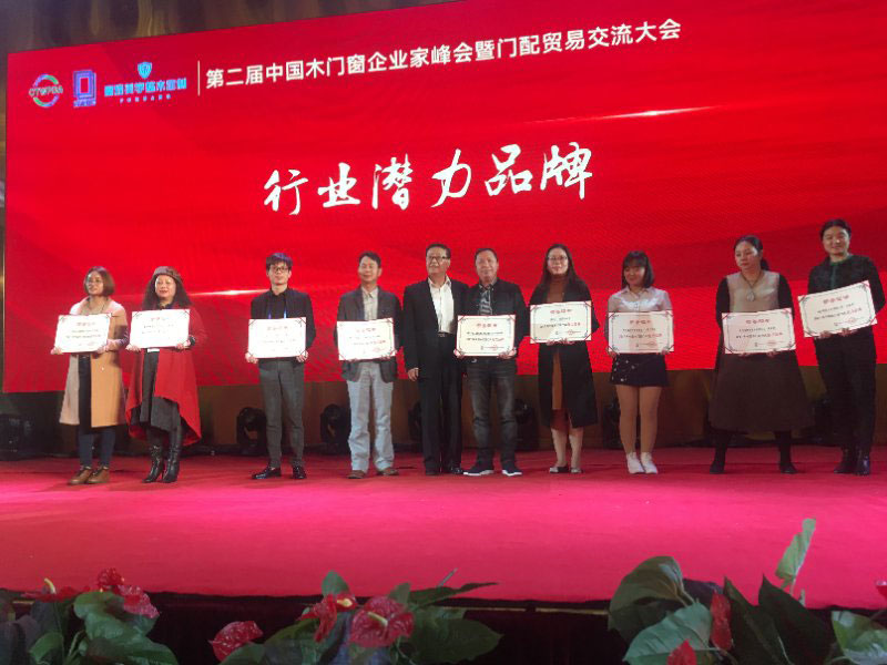 2017年第二屆中國(guó)木門窗企業(yè)家在峰會(huì)上樹(shù)興木業(yè)有限公司舉獲得2017年中國(guó)木門窗行業(yè)的潛力品牌的榮譽(yù)